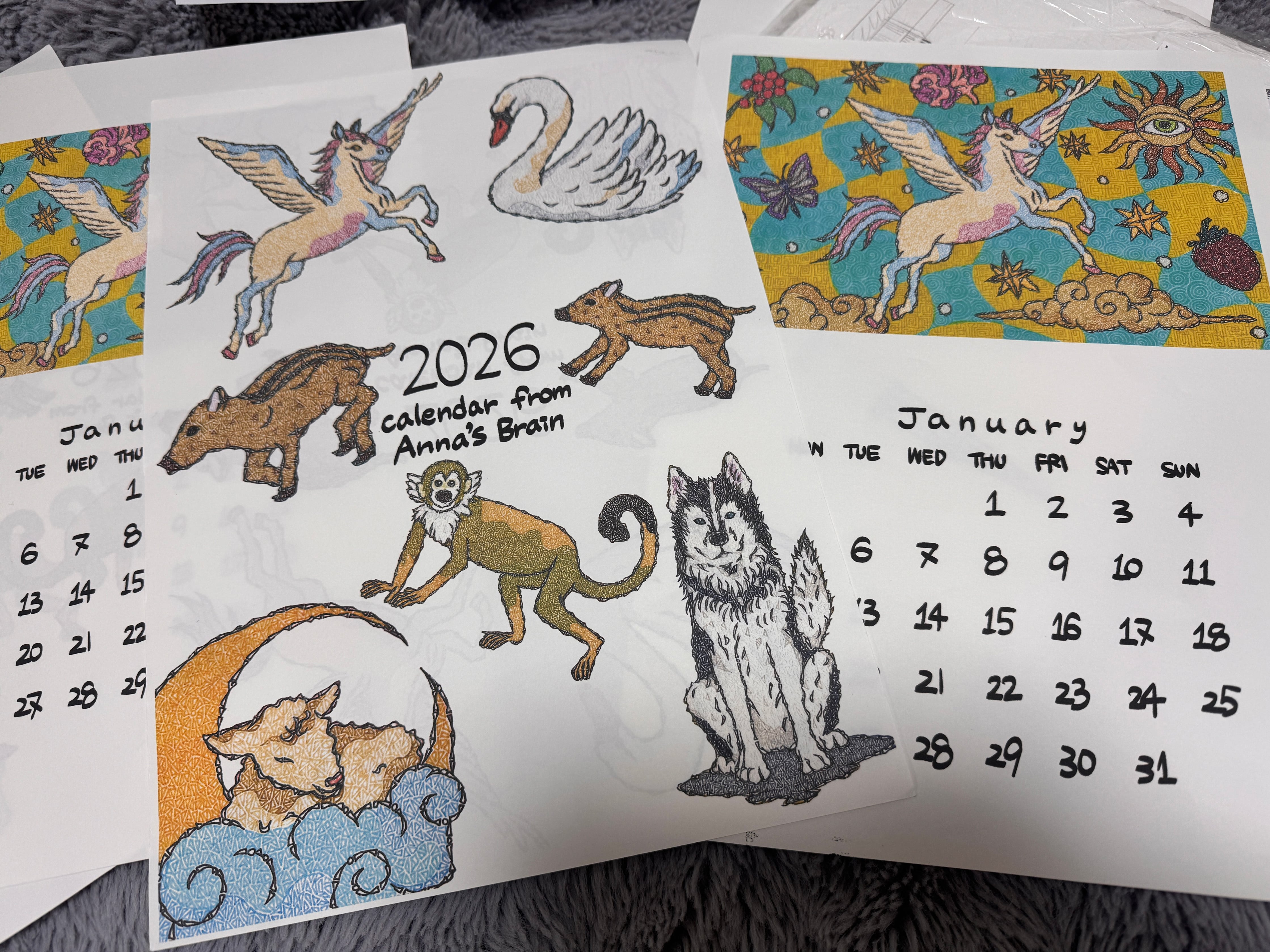 2026年のカレンダー A3サイズです。 1月〜6月分です!! 後半はまた出来次第、発表します。